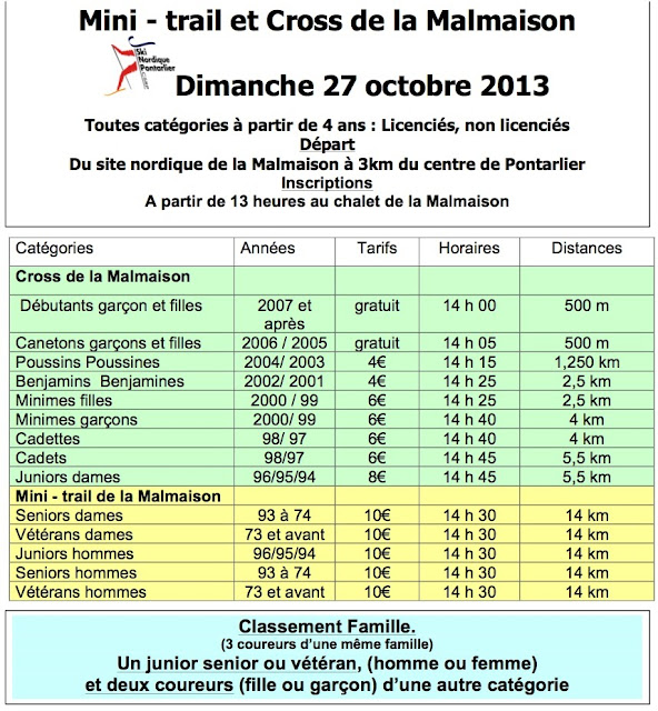 Le dimanche 27 octobre à la MALMAISON c'est le MINI TRAIL ET LE CROSS