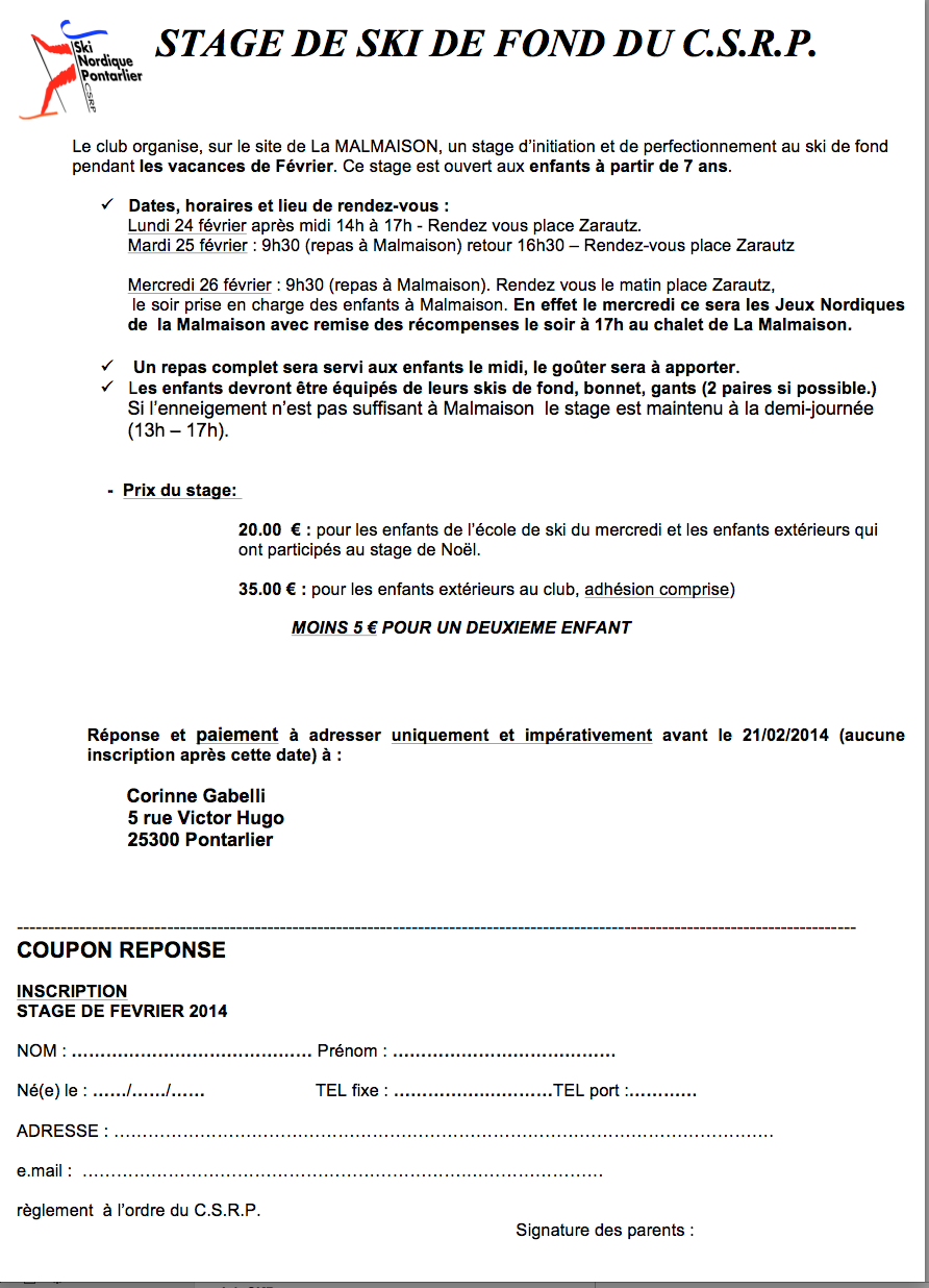 Voir les infos complémentaires pour le stage chaque soir à partir de 20h00 sur ce Blog.